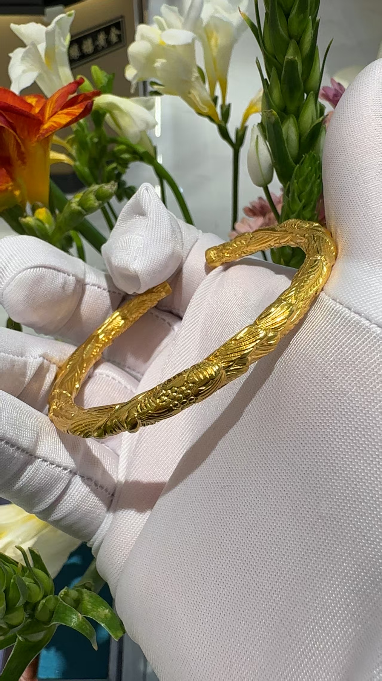 浮雕圆牡丹手镯 25/克