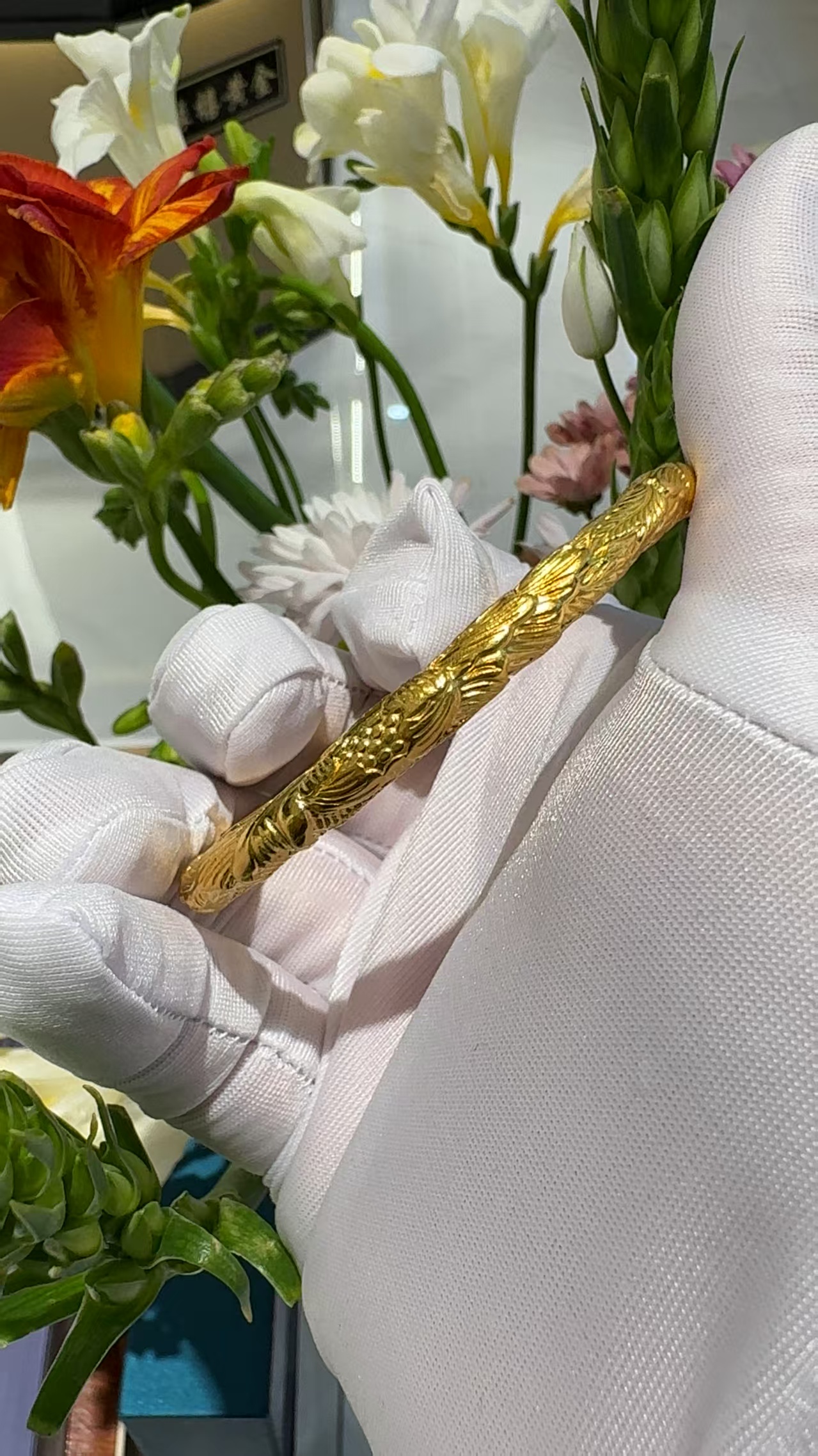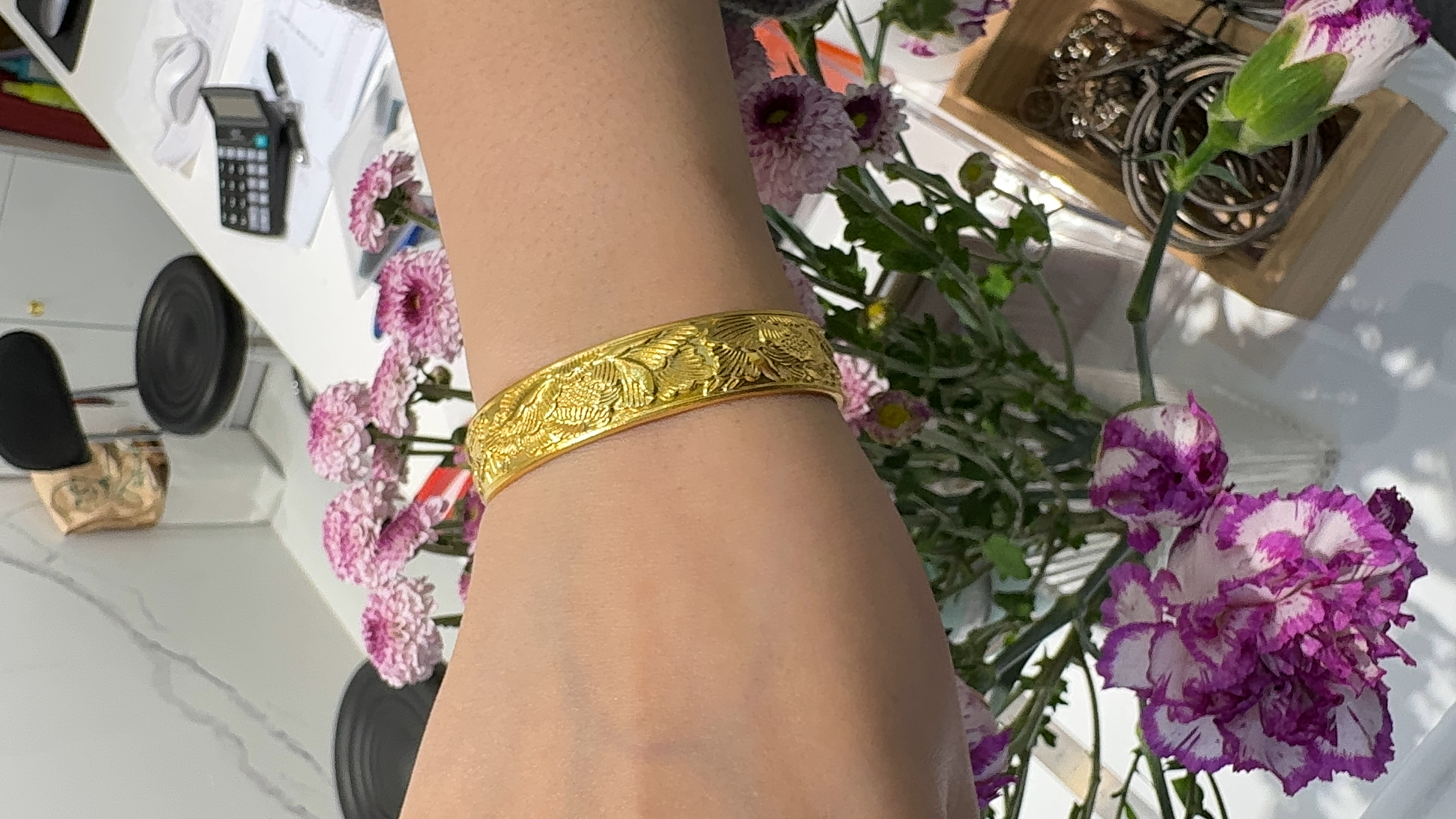 錾刻小雏菊手镯 25/克